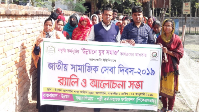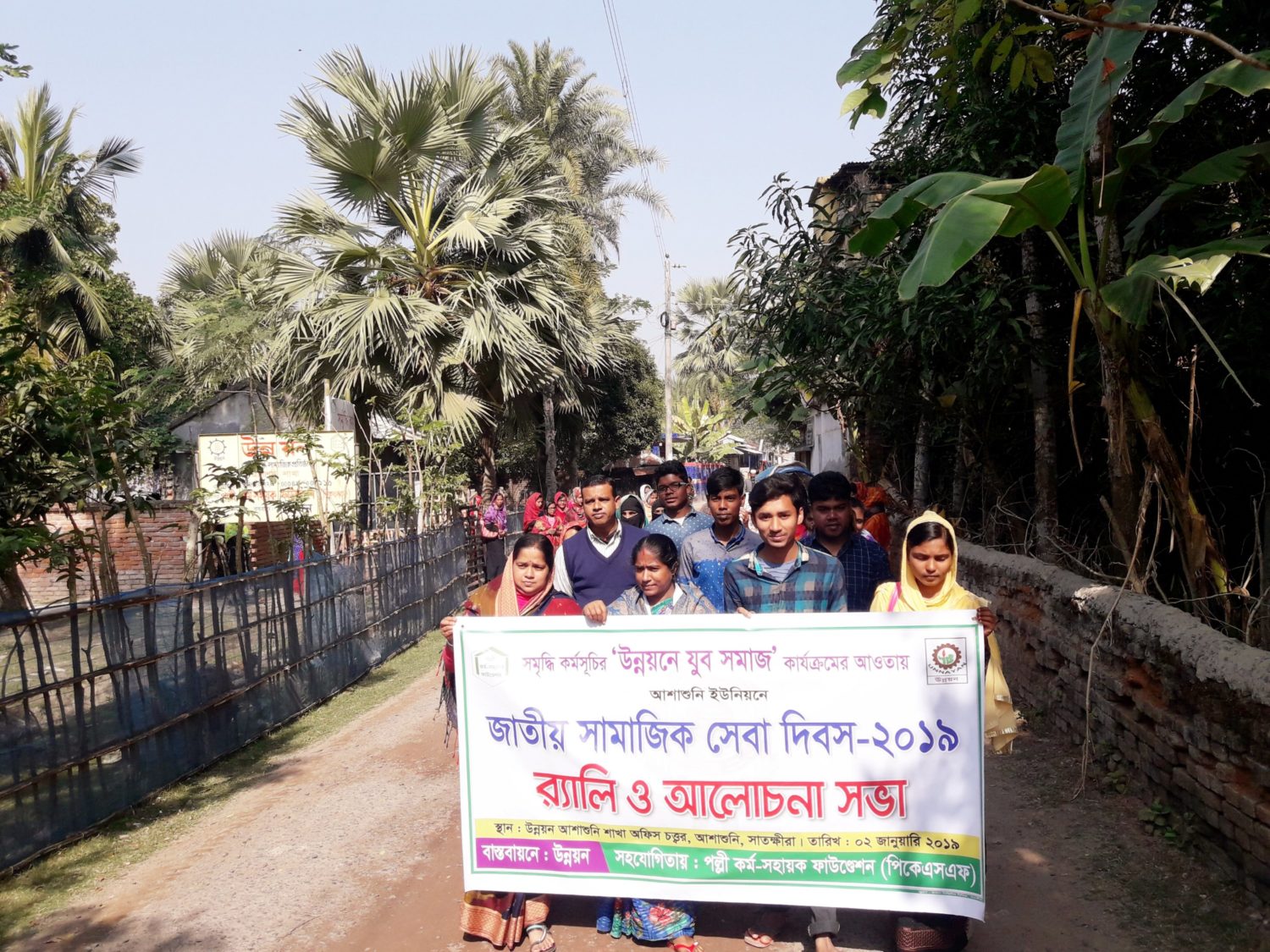 খুলনা ভিত্তিক বে-সরকারী সংস্থা উন্নয়ন এর বাস্তবায়নে পল্লী কর্ম-সহায়ক ফাউণ্ডেশন (পিকেএসএফ) এর সহযোগিতায় আশাশুনিতে সমৃদ্ধি কর্মসূচির আওতায় “উন্নয়নে যুব সমাজ” কার্যক্রমে যুব সমাজের সদস্যদের নিয়ে এক বর্ণাঢ্য র্যালি ও আলোচনা সভা অনুষ্ঠিত হয়।