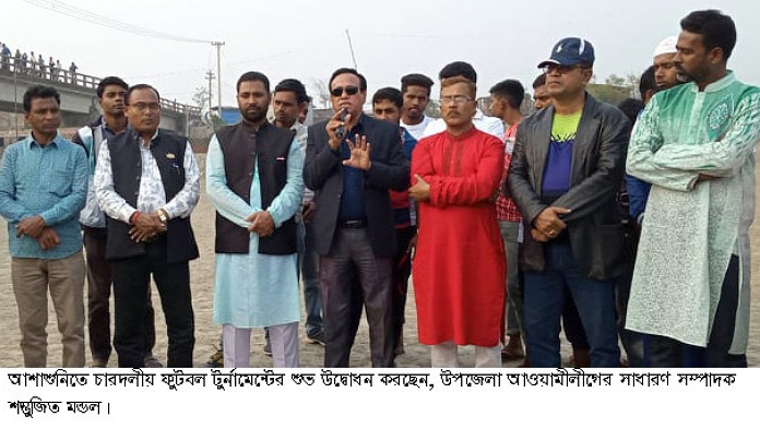 আশাশুনি প্রতিনিধি : আশাশুনি উপজেলার বড়দল ইউনিয়নের ফকরাবাদে চারদলীয় নক আউট ফুটবল টুর্নামেন্টের উদ্বোধন করা হয়েছে। বুধবার বিকাল ৪টায় ফকরাবাদ আদর্শ যুব সংঘ মাঠে প্রধান অতিথি হিসাবে উপস্থিত থেকে টুর্ণামেন্টের শুভ উদ্বোধন করেন, উপজেলা আওয়ামীলীগের সাধারণ সম্পাদক শম্ভুজিত মন্ডল। ফকরাবাদ আদর্শ যুব সংঘের আয়োজনে উদ্বোধনী খেলায় সাতক্ষীরা সদর উপজেলার চাঁদপুর বন্ধু মহল ফুটবল একাডেমী ও আশাশুনি উপজেলার চাম্পাফুল ফুটবল দল পরস্পর মুখোমুখি হয়।