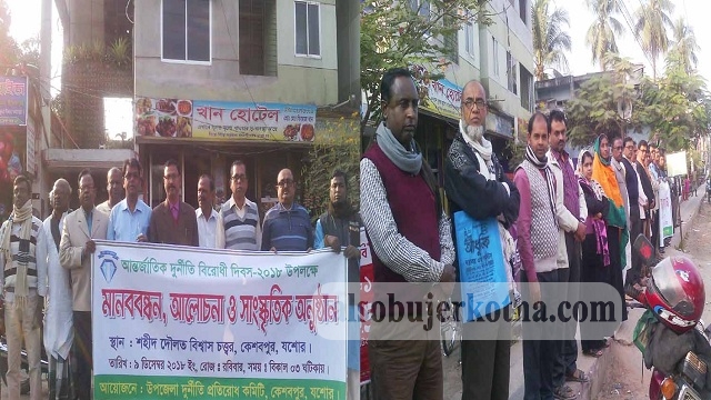 আজিজুর রহমান, কেশবপুর (যশোর) প্রতিনিধি: কেশবপুরে আন্তর্জাতিক দুর্নীতি বিরোধী দিবস ২০১৮ উপলক্ষে মানববন্ধন, আলোচনা ও সাংস্কৃতিক অনুষ্ঠান অনুষ্ঠিত হয়েছে।