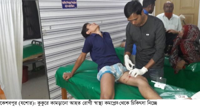 আজিজুর রহমান, কেশবপুর (যশোর) প্রতিনিধি: কেশবপুরে শুক্রবার পাগলা কুকুরের কামড়ে ২ শিশুসহ ৩ জন আহত হয়েছে। কুকুরের কামড়ে আহতরা হল উপজেলার সুজাপুর গ্রামের অলিউল্লাহ (৮), শাহাপুর গ্রামের কারিমুল ইসলাম (৭) ও মির্জানগর গ্রামের কলেজ ছাত্র মুন্না (১৮)। গত ১২ দিনে উপজেলার বিভিন্ন গ্রামের ২১ নারী, পুরুষ ও শিশু কুকুরের কামড়ে আহত হয়। আহতরা উপজেলা স্বাস্থ্য কমপ্লেক্স থেকে চিকিৎসা গ্রহণ করেছে।