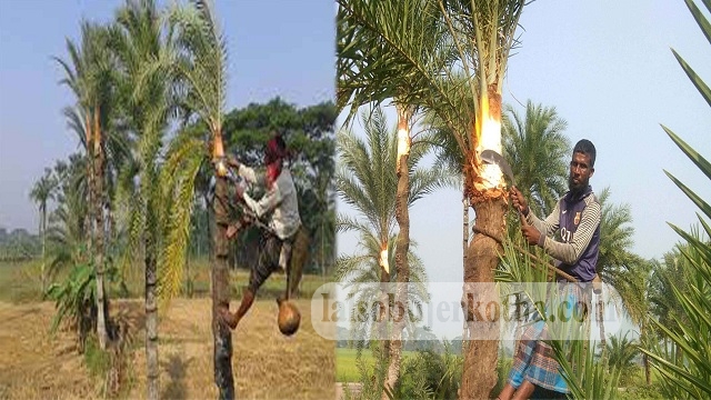 আজিজুর রহমান, কেশবপুর (যশোর) প্রতিনিধি: কেশবপুরে শীত মৌসুম আসলেই গাছিরা খেজুর রসের সন্ধানে গাছ তুলতে বা গাছ কাঁটতে ব্যস্ত হয়ে পড়েন। খেজুর রসের গুড় দেশের চাহিদা মিটিয়ে বিদেশেও রপ্তানি হয় বলে গাছিরা জানান। গাছিরা প্রতিদিন সকাল থেকে সন্ধ্যা পর্যন্ত গাছ কাঁটার কাজ নিয়ে ব্যস্ত সময় পার করেন। এদিকে মিনি ইটভাঁটায় খেজুর গাছ পুড়ানোর কারণে রস ও গুড় এখন প্রায় বিলুপ্তির পথে।