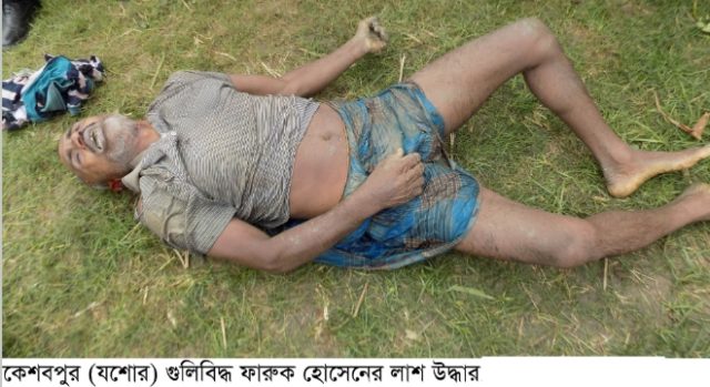 কেশবপুর থানার অফিসার ইনচার্জ মোহাম্মদ শাহিন জানান, গুলিতে তার মৃত্যু হয়েছে বলে ধারণা করা হচ্ছে। উদ্ধার হওয়া লাশটি যশোরের শার্শা উপজেলার সামটা গ্রামের মৃত জেহের আলী ছেলে ফারুক হোসেনের (৫২)। লাশ ময়নাতদন্তের জন্য যশোর জেনারেল হাসপাতালের মর্গে প্রেরণ করা হয়েছে।