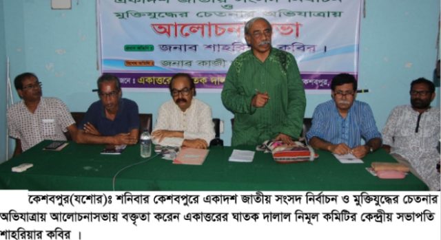 আজিজুর রহমান, কেশবপুর (যশোর) প্রতিনিধি: একাত্তরের ঘাতক দালাল নির্মূল কমিটির উদ্যোগে একাদশ জাতীয় সংসদ নির্বাচন ও মুক্তিযুদ্ধের চেতনার অভিযাত্রায় মতবিনিময় সভা কেশবপুর প্রেসক্লাবের কনফারেন্স রুমে অনুষ্ঠিত হয়েছে। শনিবার সন্ধ্যায় ঘাতক দালাল নির্মূল কমিটি উপজেলা শাখার সভাপতি এ্যাডভোকেট আবু বক্কার সিদ্দিকী অনুষ্ঠানে সভাপতিত্ব করেন।