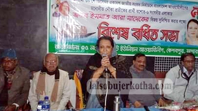 আজিজুর রহমান, কেশবপুর (যশোর) প্রতিনিধি: কেশবপুর উপজেলার মঙ্গলকোট ইউনিয়ন আওয়ামীলীগের উদ্যোগে নৌকার বিজয় সুনিশ্চিত করার লক্ষ্যে এক বিশেষ বর্ধিত সভা অনুষ্ঠিত হয়েছে। শনিবার মাধ্যমিক বালিকা বিদ্যালয়ের হলরুমে প্রধান শিক্ষক আজিজুর রহমানের সঞ্চালনায় একাদশ জাতীয় সংসদ নির্বাচন পরিচালনা কমিটির আহŸায়ক ইউপি চেয়ারম্যান মনোয়ার হোসেনের সভাপতিত্বে প্রধান অতিথি হিসাবে বক্তব্য রাখেন মনোনীত নৌকা প্রতিকের যশোর ৬ সংসদীয় এলাকার প্রার্থী জনপ্রশাসন প্রতিমন্ত্রী ইসমাত আরা সাদেক।