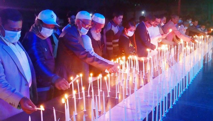 আজিজুর রহমান, কেশবপুর প্রতিনিধি: কেশবপুরে মোমবাতি প্রজ্জলনের মাধ্যমে ভাষা আন্দোলনের অমর শহিদদের প্রতি শ্রদ্ধা জানানো হয়েছে। শনিবার সন্ধ্যা ৬টা ৩০ মিনিটে উপজেলা প্রশাসনের উদ্যোগে কেন্দ্রীয় শহিদ মিনারে আনুষ্ঠানিকভাবে ওই মোমবাতি প্রজ্জলনের মধ্য দিয়ে শহিদ দিবস ও আন্তজার্তিক মাতৃভাষা দিবসের শুভ সূচনা করা হয়। পরে শহিদদের স্মরণে এক মিনিট নিরবতা পালন করা হয়।