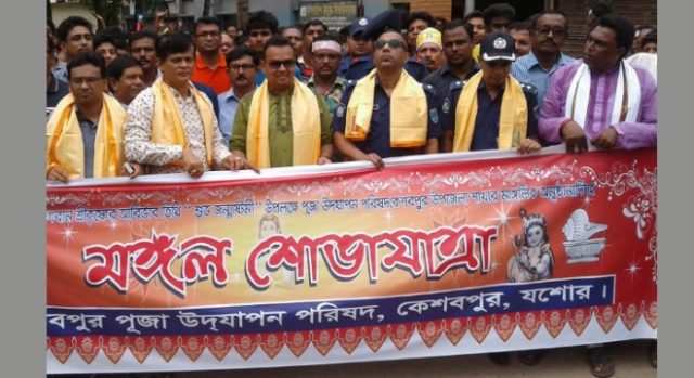 আজিজুর রহমান, কেশবপুর (যশোর) প্রতিনিধি: যথাযোগ্য মর্যাদায় ধর্মীয় ভাবগাম্ভির্যের মধ্য যুগাবতার শ্রী শ্রী কৃষ্ণের আবির্ভাব তিথী জন্মাষ্টমী উৎসব পালিত হয়েছে। দিবসটি পালনের লক্ষ্যে বাংলাদেশ পূজা উদযাপন পরিষদ কেশবপুর উপজেলা শাখা বিভিন্ন কর্মসুচি গ্রহণ করে। সকালে কেন্দ্রীয় কালীমন্দিরে মঙ্গল প্রদীপ প্রজ্জলন, কেশবপুর পাইলট স্কুল এন্ড কলেজে আলোচনা সভা ও মঙ্গল শোভাযাত্রা অনুষ্ঠিত হয়েছে।