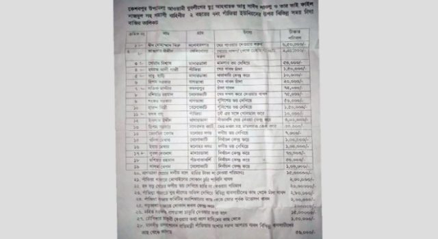 আজিজুর রহমান, কেশবপুর (যশোর) প্রতিনিধি: কেশবপুর উপজেলা যুবলীগের যুগ্ম আহবায়ক আবু সাঈদ লাভলুর চাঁদাবাজি, দলীয় নেতাকর্মীদের মারপিট, নির্যাতন ও মামলাসহ বিভিন্ন অপকর্মের খতিয়ানের একটি লিফলেট গত রোববার সকালে উপজেলা ব্যাপী বিতরণ করা হয়েছে। এ ঘটনায় জড়িত সন্দেহে আওয়ামীলীগ ও যুবলীগের দুই কর্মীকে শারীরিক নির্যাতনসহ পুলিশে দিয়ে নাশকতা মামলায় ঢোকানো হয়েছে বলে এলাকাবাসি অভিযোগ করেছেন। নির্যাতিত দুই নেতার মধ্যে একজনকে মুমূর্ষু অবস্থায় কেশবপুর উপজেলা স্বাস্থ্য কমপ্লেক্সে ভর্তি করা হয়েছে এবং অপরজনকে পুলিশ নাশকতা মামলায় আদালতে সোপর্দ করেছে। এনিয়ে এলাকায় ব্যাপক তোলপাড়ের সৃষ্টি হয়েছে।