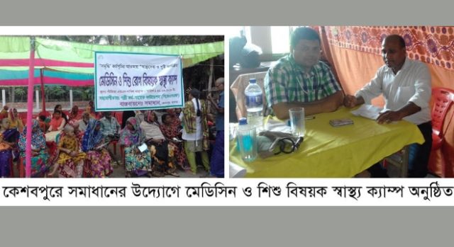 কেশবপুরে ‘সমাধান’ সমৃদ্ধি কর্মসুচির আওতায় (পিকেএসএফ) এর অর্থায়নে মেডিসিন ও শিশু বিষয়ক স্বাস্থ্য ক্যাম্প অনুষ্ঠিত হয়েছে। বৃহস্পতিবার সকাল থেকে দুপুর পর্যন্ত পাঁজিয়া ইউনিয়নে পাঁজিয়া এমএন ইসলামিয়া দাখিল মাদ্রাসায় রোগিকে ফ্রি চিকিৎসা সেবা প্রদান করা হয়।