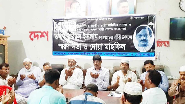 আজিজুর রহমান, কেশবপুর (যশোর) প্রতিনিধি : কেশবপুর থানা ও পৌর বিএনপির আয়োজনে বিএনপির স্থায়ী কমিটির সদস্য ও সাবেক সফল মন্ত্রী প্রয়াত তরিকুল ইসলামের ১ম মৃত্যুবার্ষিকী উপলক্ষে স্বরণসভা ও দোয়া মাহফিল অনুষ্ঠিত হয়েছে।