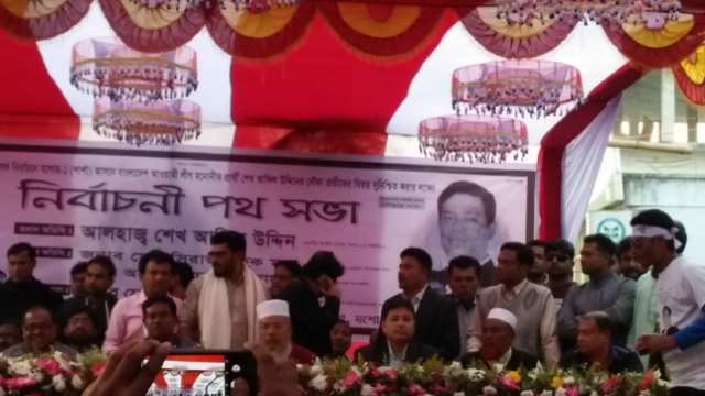 মোঃ জাকির হোসেন,বেনাপোল প্রতিনিধি: একাদশ জাতীয় সংসদ নির্বাচন-২০১৮ এর নির্বাচনী প্রচার- প্রচারনা এখন তুঙ্গে। বিভিন্ন মার্কার প্রার্থীরা তাদের দলীয় নেতা- কর্মীদের সাথে নিয়ে নির্বাচনী প্রচার-প্রচারনা চালিয়ে যাচ্ছেন। তবে, স্বাধীনতার পক্ষের শক্তি ক্ষমতাসীন আওয়ামীলীগের নৌকা প্রতীক নিয়ে এবার ৮৫,যশোর-১(শার্শা) আসনের প্রার্থী শেখ আফিল উদ্দীনের নির্বাচনী প্রচারনা এলাকায় বেশ সাড়া ফেলেছে। নির্বাচনী মাঠ ঘুরে দেখা গেছে নৌকা প্রতীক ছাড়া অন্য কোন মার্কার প্রার্থীর কোন খোজ- খবর নেই বললেই চলে।