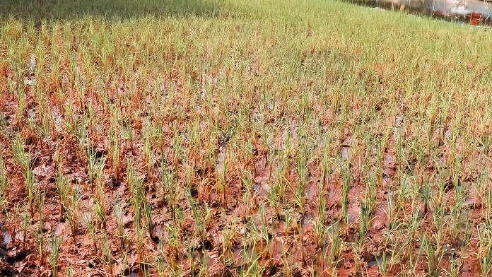 এখানকার যে সকল জমিতে বোরো ধান লাগানো হয়েছে তার অর্ধেক জমির ধান হলুদ বর্ণ ধারণ করে ফ্যাকাশে হয়ে গেছে। ফলে কৃষকেরা ঠিক মত ফসল না পাওয়ার আশংকায় ভুগছেন।উপজেলা কৃষি অফিস সূত্রে জানা গেছে, আম্ফানের ক্ষত কাটিয়ে ওঠার পর চলতি মৌসুমে আড়াই হাজারের বেশি কৃষককে বোরো ধান চাষে সহায়তা করা হয়েছে। বীজ,সার, প্রয়োজনীয় পরামর্শ সহ কৃষকদের প্রণোদনা দেওয়াহয়। উপসহকারী কৃষি কর্মকর্তা গুরুদাস সরকার বলেন, বোরোর ক্ষেত প্রায় সময় পরিদর্শন করে কৃষকের নির্দেশনা প্রদান করা হচ্ছে। ৪ হাজার হেক্টর জমিতে ২০/২৫ হাজার টন বোরো উৎপাদনের লক্ষ মাত্রা নির্ধারন করা হয়েছে। তবে কিছু জমিতে বিএলবি রোগের কারণে ধান লাল চেবর্ণ ধারণ করেছে।