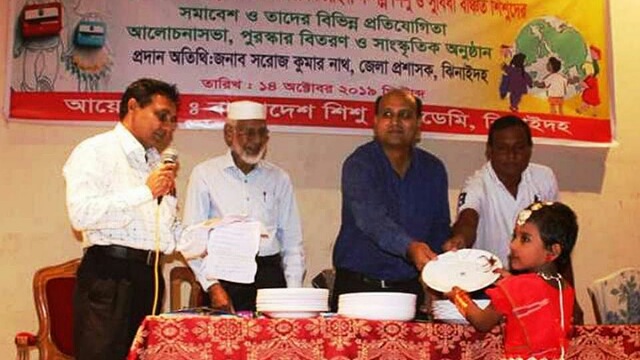 সকাল সড়ে ১১ টায় পথ শিশু,শ্রমজীবী শিশু,অতস্টিক শিশু, বিশেষ চাহিদা সম্পন্ন শিশু ও সুবিধা বঞ্চিত শিশুদের পুরষ্কার বিতরণ অনুস্থানে ঝিনাইদহ শিশু বিষয়ক কর্মকর্তা আয়ুব হোসেনের সভাপতিত্বে প্রধান অতিথি হিসাবে শিশুদের উদ্দেশ্যে বক্তব্য রাখে ঝিনাইদহ জেলার অতিরিক্ত জেলা প্রশাসক আরিফুজ্জামান বিশেষ অতিথি হিসাবে উপস্থিত ছিল সাবেক অধ্যক্ষ এন এম শাহাজালাল ঝিনাইদহের বিশিষ্ট সাংবাদিক ঝিনাইদহ জেলা রিপোটার্স ইউনিটির সাধারণ সম্পাদক সাহিদুল এনাম পল্লব,শিশুদের মধ্যে থেকে বক্তব্য রাখে ঝিনাইদহ সরকারি উচ্চ বিদ্যালয়ের ফারদিন রহমান এবং ঝিনাইদহ সরকারি বালিকা বিদ্যালয়ের শিক্ষার্থী সুমাইয়া আখতার মিম সহ অনুষ্ঠানে আগত শিশু ও শিশুদের অভিবাবক বৃন্দ। আলোচনা অনুষ্ঠান শেষ অতিরিক্ত জেলা প্রশাসক আরিফুজ্জামান বিজয়ী শিশুদের হাতে পুরষ্কার তুলে দেন।