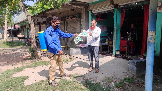 নগরঘাটা ইউনিয়ন পরিষদের চেয়ারম্যান মো. কামরুজ্জামান লিপুর উদ্যোগে বাড়ি বাড়ি গিয়ে গ্রাম পুলিশেরা এ ঔষধ স্প্রে করছে। ঔষধ স্প্রে করার পাশাপাশি করোনাভাইরাস প্রতিরোধে জরুরী স্বাস্থ্য বার্তা সম্বলিত হ্যান্ড লিফলেট বিতরণ করছে। জানা গেছে করোনা প্রতিরোধে এ ঔষধ প্রতিদিন স্প্রে করা হবে।