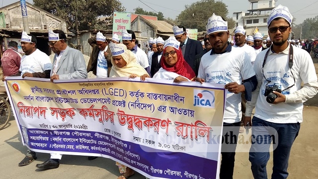 আবু তারেক বাধন,পীরগঞ্জ (ঠাকুরগাঁও) প্রতিনিধিঃ ঠাকুরগাঁওয়ের পীরগঞ্জে নিরাপদ সড়ক কর্মসূচীর উদ্বুদ্ধকরণ বিষয়ক ১ দিন ব্যাপী প্রশিক্ষন ও র্যালী অনুষ্ঠিত হয়েছে। পীরগঞ্জ পৌর সভা’র আয়োজনে নবিদেপ প্রকল্পের সহযোগীতায় বুধবার সকালে পৌর অডিটোরিয়ামে এ কর্মসুচীর উদ্বোধন করেন এলজিইডি দিনাজপুর অঞ্চলের তত্বাবধায়ক প্রকৌশলী আব্দুল মালেক সরকার।