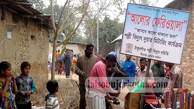 ঠাকুরগাও পল্লী বিদ্যুৎ সমিতির পীরগঞ্জ জোনাল অফিস সুত্র জানায়, খুব সহজেই এবং স্বল্প সময়ে বিদ্যুৎ সংযোগ প্রদানের লক্ষে প্রধান মন্ত্রী শেখ হাসিন ও পল্লী বিদ্যুতায়ন বোর্ডের চেয়ারম্যানের নির্দেশনায় আলোর ফেরিওয়ালা নামে একটি কার্যক্রম শুরু করেছেন তারা। এ কার্যক্রমের আওতায় বিদ্যুৎ বিভাগের লোকজন গ্রাহকের বাড়ি বাড়ি গিয়ে আবেদন সহ প্রয়োজনীয় ফি জমা নিয়ে তাৎক্ষনিক সংযোগ প্রদান করবে। এতে গ্রাহক হয়রানির হাত থেকে রক্ষা পাবে।
