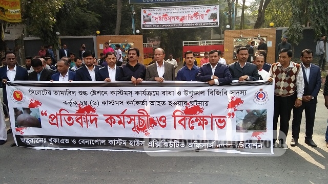 কাস্টমস কর্মকর্তারা বিক্ষোভ কর্মসূচী সহ তাদের অভ্যন্তরীন বিভিন্ন দাবী দাওয়া পুরনের লক্ষে রবিবার সকাল ১০ টায় বেনাপোল কাস্টমস হাউজের পক্ষ থেকে বিক্ষোভ কর্মসূচী পালন করা হয় বেনাপোল কাস্টমস হাউসের প্রধান গেটের সামনে। কর্মসূচীর ঐ স্থানে বক্তব্য দেন, বাংলাদেশ খুকা এভ এর সাধারন সম্পাদক আব্দুল্লাহ আল-মামুন,বেনাপোল কাস্টমস হাউস অফিসার্স এসোসিয়েশনের যুগ্ম সাধারন সম্পাদক বিশ্বনাথ কুন্ডু এবং নাদিম আহম্মেদ,বেনাপোল সি এন্ড এফ মালিক সমিতির সাধারন সম্পাদক ইমদাদুল হক লতা, সি এন্ড এফ ষ্টাফ এসাসিয়েশনের সাধারন সম্পাদক নাসির উদ্দীন সহ অন্যান্য নেতৃবৃন্দ।