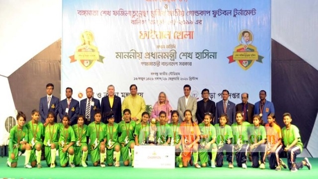 খেলাধুলা ডেস্ক: প্রধানমন্ত্রী শেখ হাসিনা যখন পুরস্কার মঞ্চে উঠলেন তখন বঙ্গবন্ধু জাতীয় স্টেডিয়ামের গ্যালারিতে তুমুল করতালি। মঞ্চের সামনে সারিবদ্ধ হয়ে দাঁড়িয়ে দু’দল কিশোর-কিশোরী।