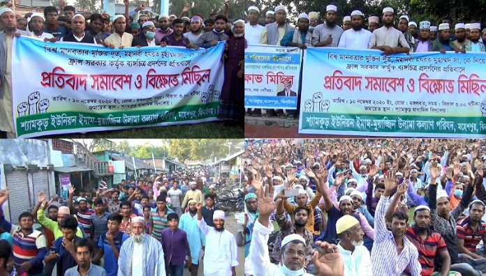 ১০ ই নভেম্বর মঙ্গলবার বিকালে উপজেলার শ্যামকুড় মাধ্যমিক বিদ্যালয় মাঠে মাওলানা ইমদাদুল ইসলামের সঞ্চালনায় শ্যামকুড় ইউনিয়ন ইমাম মুয়াজ্জিন উলামা কল্যাণ পরিষদের উদ্যোগে কমিটির সভাপতি মাওলানা আবু তাহের জুয়েলের সভাপতিত্বে এসময় উপস্থিত থেকে বক্তব্য রাখেন, শ্যামকুড় ইউনিয়ন পরিষদের চেয়ারম্যান আমানুল্লাহ হক,শ্যামকুড় ইউনিয়ন স্বেচ্ছাসেবক লীগের আহ্বায়ক জামিরুল হক,শ্যামকুড় ইউনিয়ন ইমাম মোয়াজ্জিন ওলামা কল্যাণ পরিষদের সাধারণ সম্পাদক মাওলানা ইকরামুল ইসলাম, সাংগঠনিক সম্পাদক মাওলানা আতিকুর রহমান,অর্থ বিষয়ক সম্পাদক মাওলানা শাহজাহান,প্রচার সম্পাদক মাওলানা ইমতিয়াজ প্রমুূখ।এছাড়াও ইউনিয়নের প্রতিটি গ্রাম থেকে হাজার হাজার ধর্মপ্রাণ মুসলমান রাসুল প্রেমী তৌহিদী জনতা সমাবেশ ও বিক্ষোভ মিছিলে অংশগ্রহণ করেন।