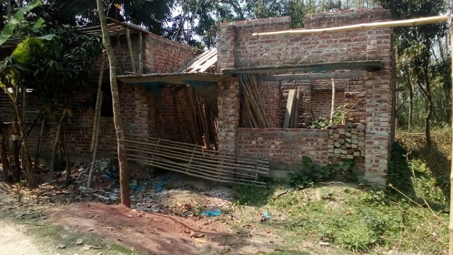 মান্দায় একটি অসহায় পরিবারের নির্মাণাধীন বাড়ি ভেঙ্গে ফেলার হুমকি