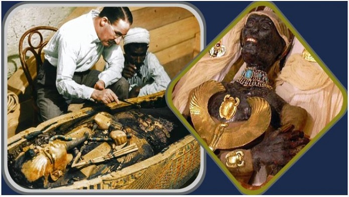 অনেক চেষ্টা করে ১৯২৩ সালের ১৭ ফেব্রুয়ারি, তারা সমাধির দরজা ভাঙেন। অবাক হয়ে যান মমির কফিন খুলে। স্বর্ণের তৈরি ৮টি কফিনের মধ্যে রাখা ছিল তার মমি। ইতিহাসে এমন মমির হদিস মেলেনি এখনও। প্রথম কফিনটি খোলার পর একে একে ৭টি ছোট-বড় কফিন খুলে অবশেষে তুতেনখামেনের মমি বের করেন গবেষকরা। সবগুলো কফিনেই স্বর্ণ, মণি-মুক্তার আবরণ ছিল।